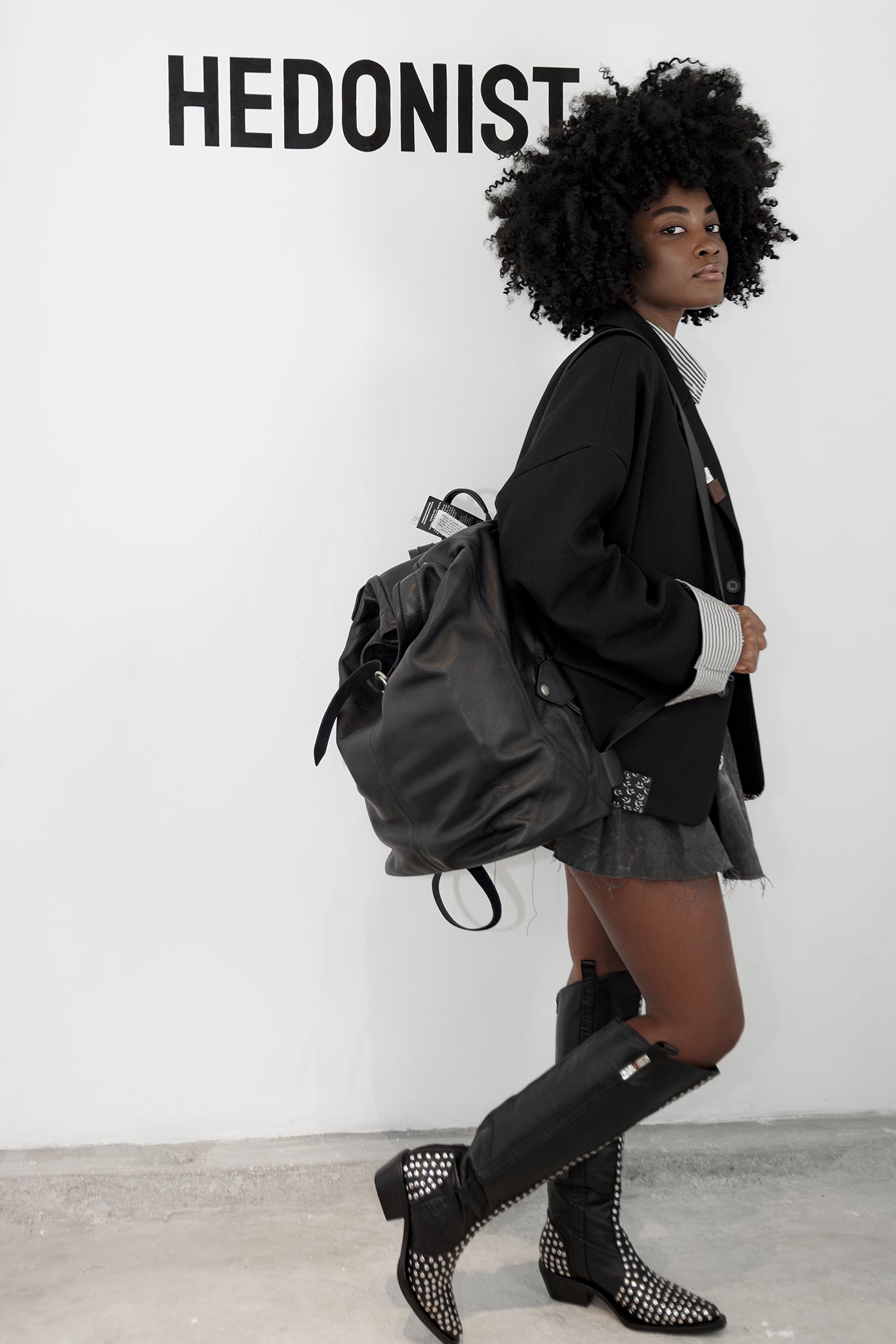 This ensemble perfect for a vocal person. Who has a highest knowledge, always curious to the new things and new trends. This look is for you. Embrace a fashion-school edgy look, be your own rockstar.