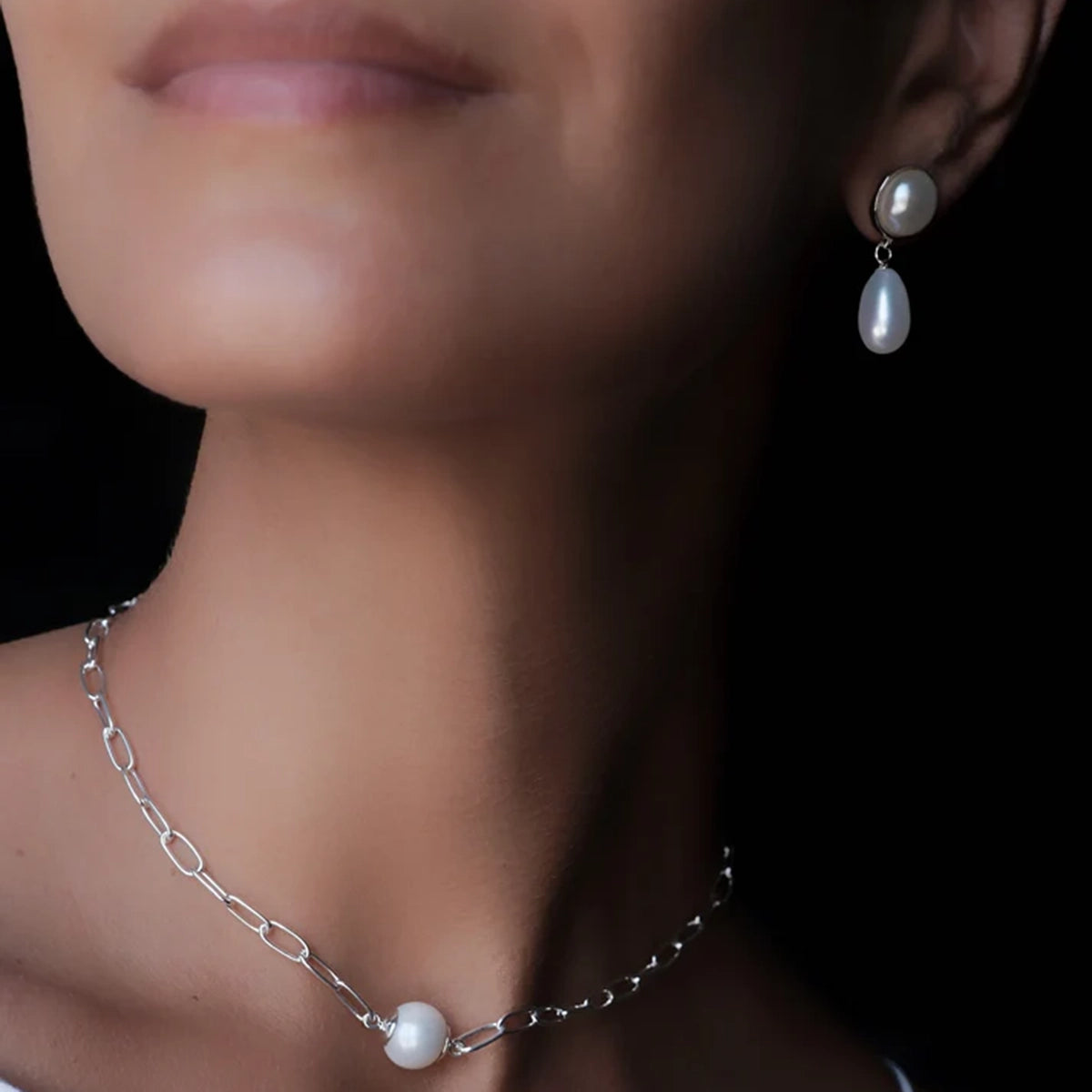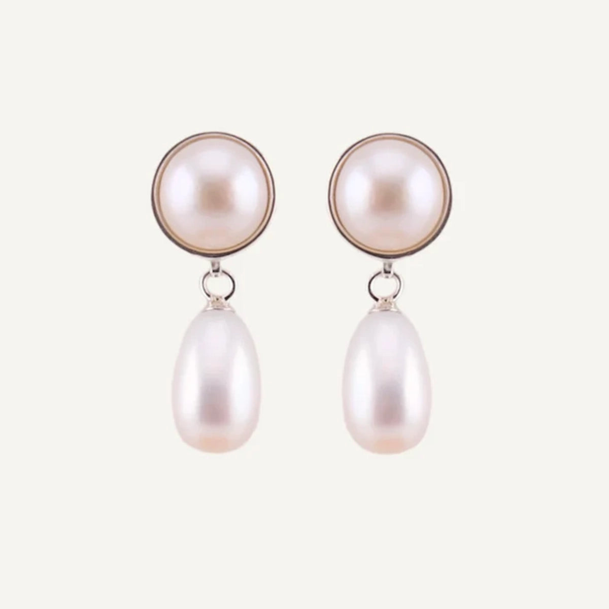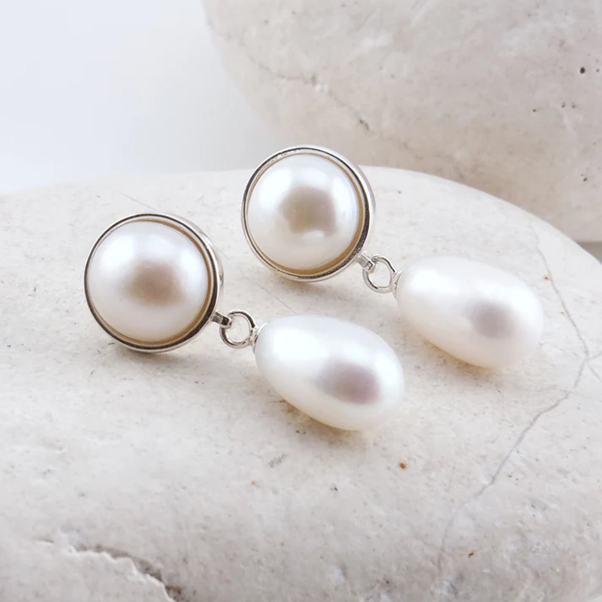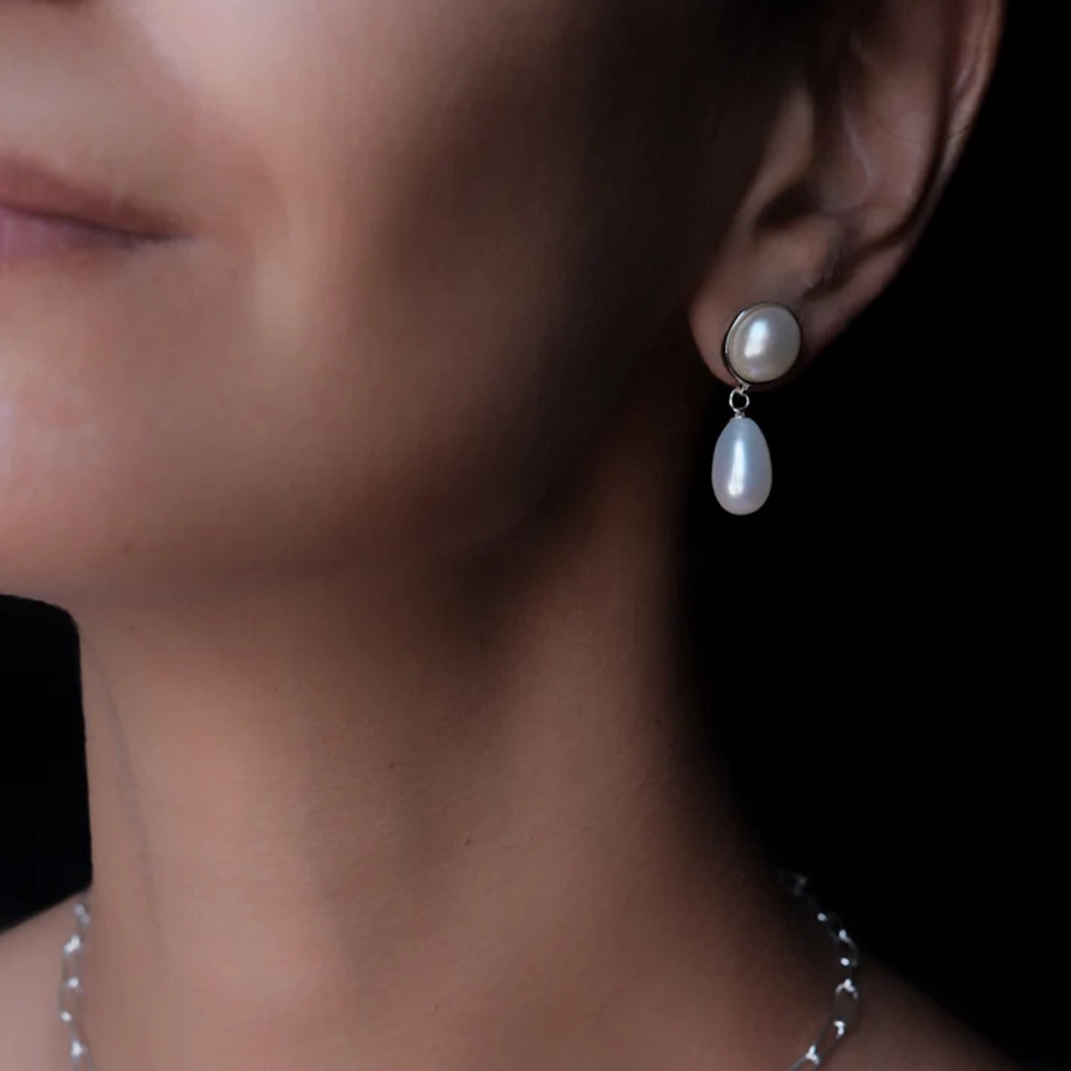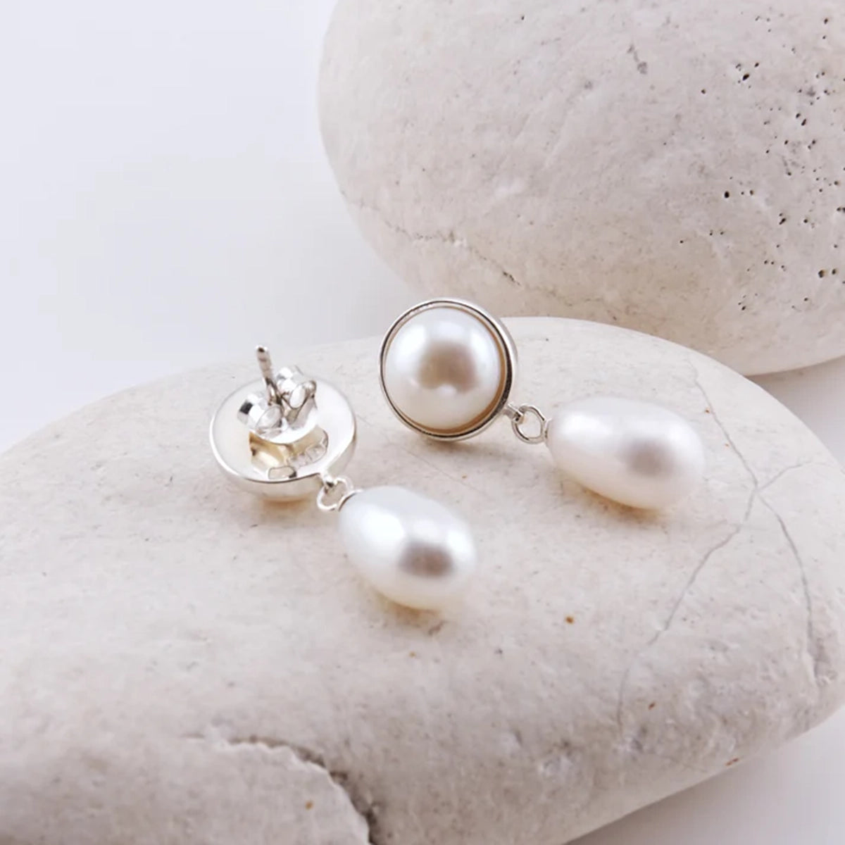 Circle 925 Sterling Silver Earrings with White Pearls. Completely Handmade in Bali.