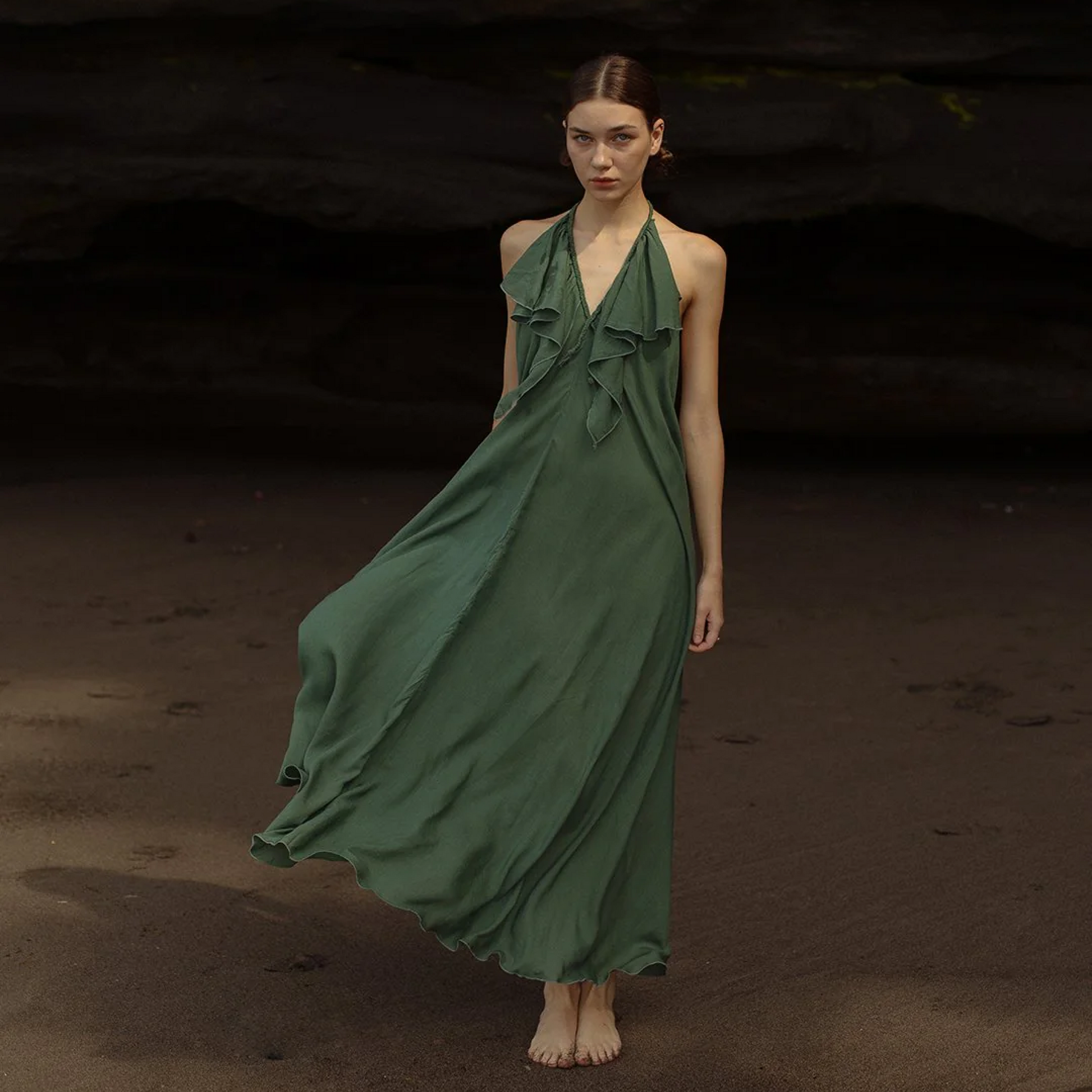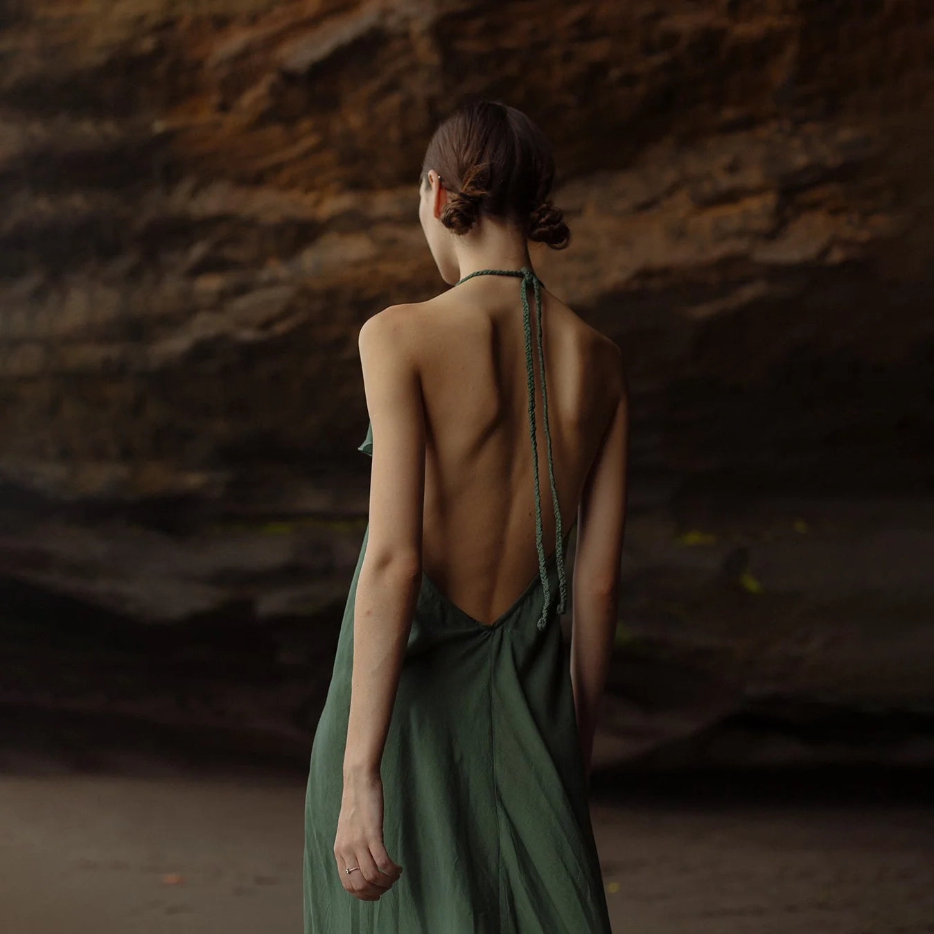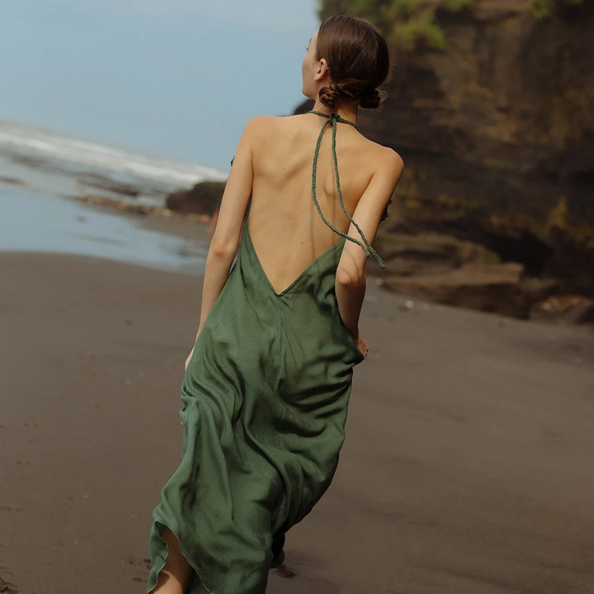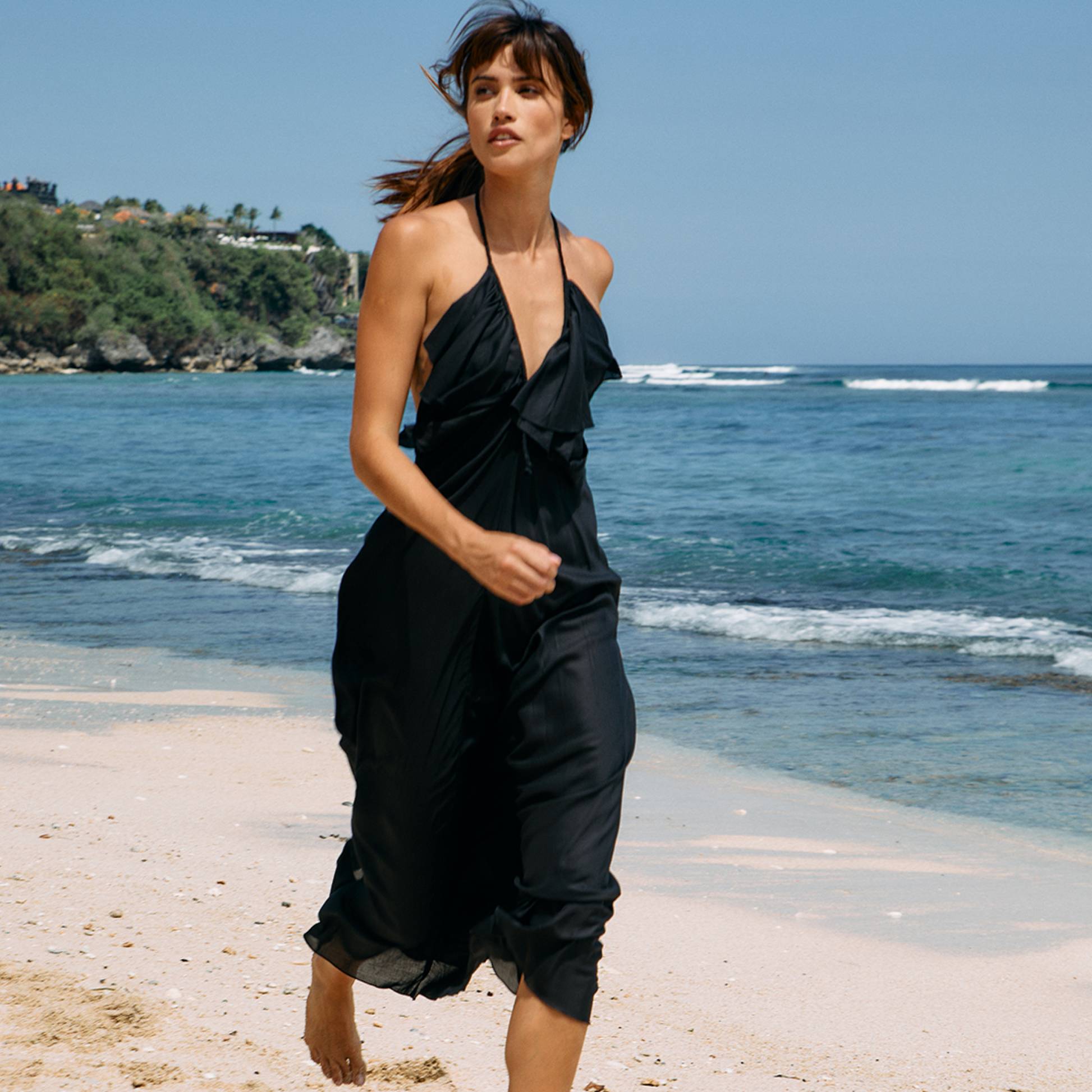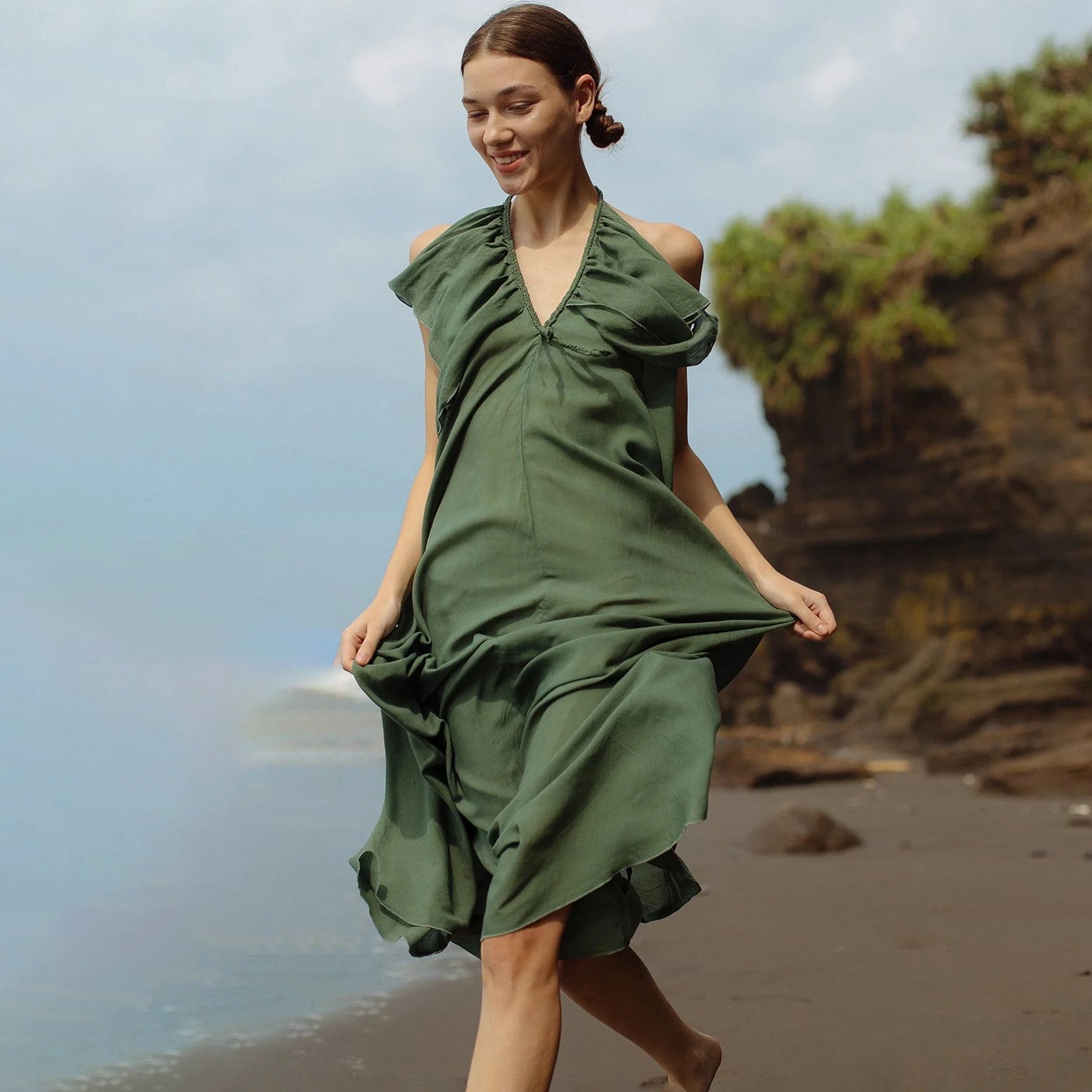 Allure meets sophistication in our Barbara's Night eco dress. With its signature braided straps details and a flattering ruffled neckline, this dress exudes elegance while still maintaining an irresistible hint of seduction. Crafted from sustainable TENCEL™, this luxurious garment is 100% natural, organic, and biodegradable, ensuring comfort while being gentle on the environment. Handmade by expert tailors in Bali, the dress has a relaxed fit, ultra-soft feel, and guaranteed superior comfort. To keep your dress looking its best, simply handwash in cold water and avoid bleach and the dryer. Thank you for helping us care for our planet.