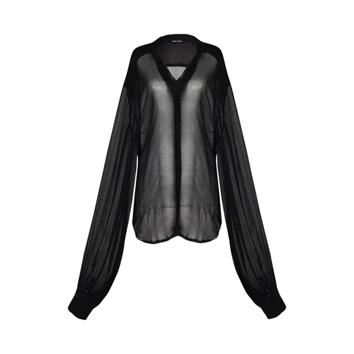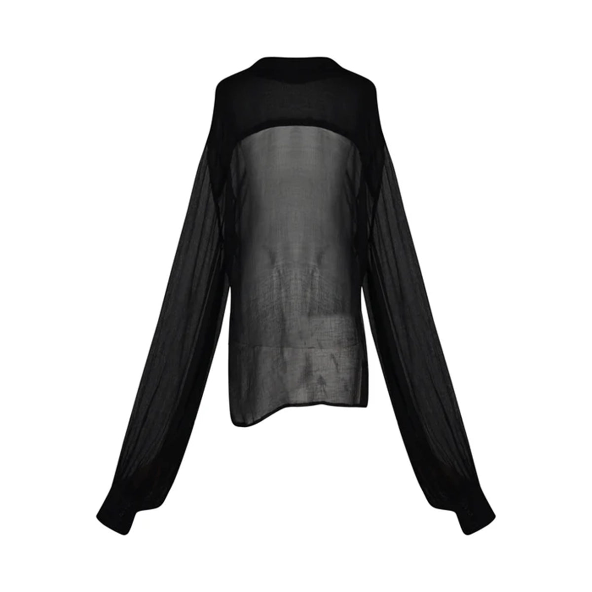 The Cindy shirt, with its romantic flowing sleeves and our chiffon silk fabric adds a touch of elegance. Model wearing XS.