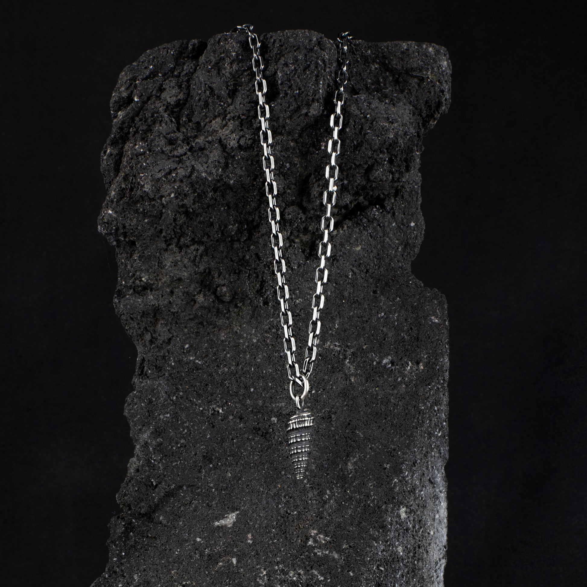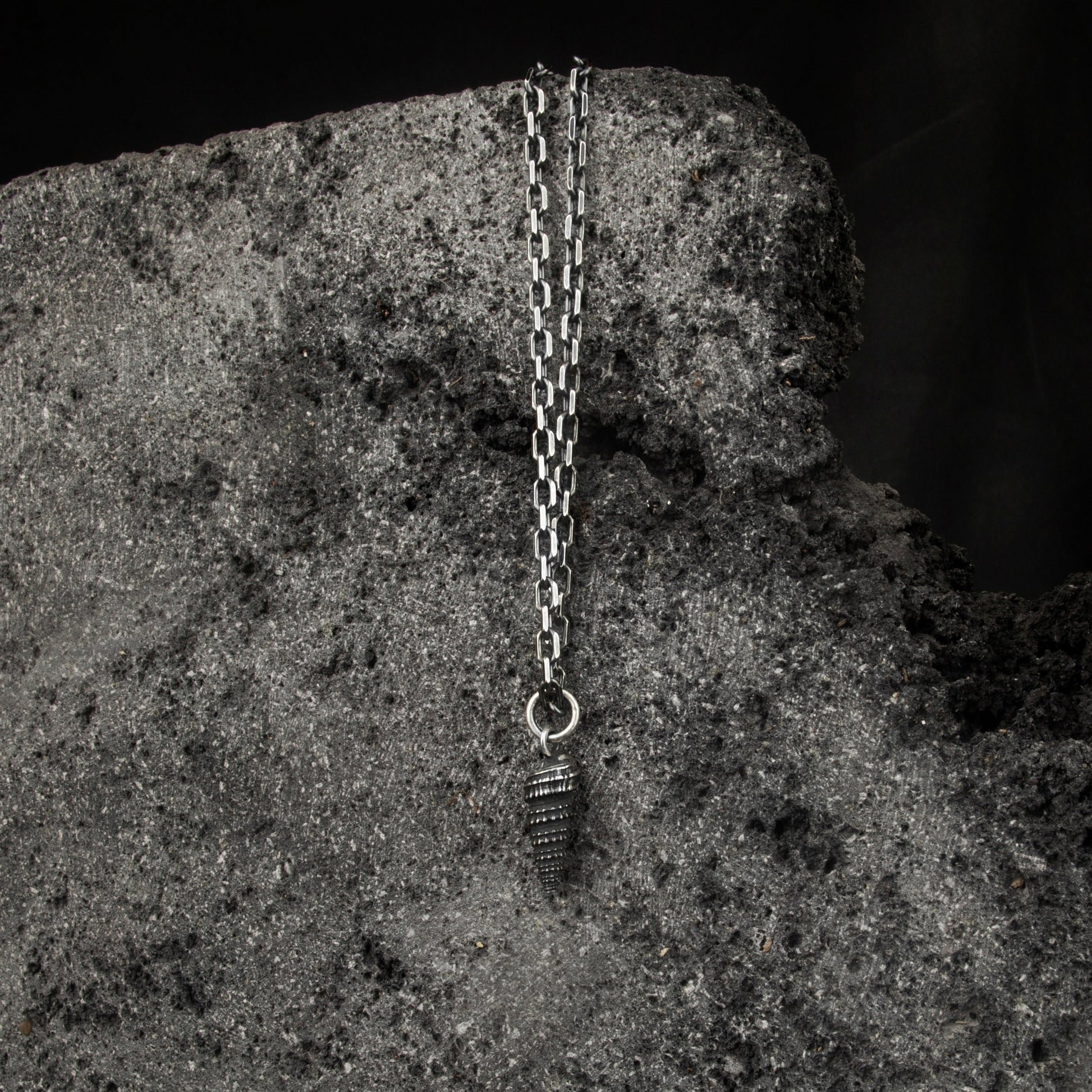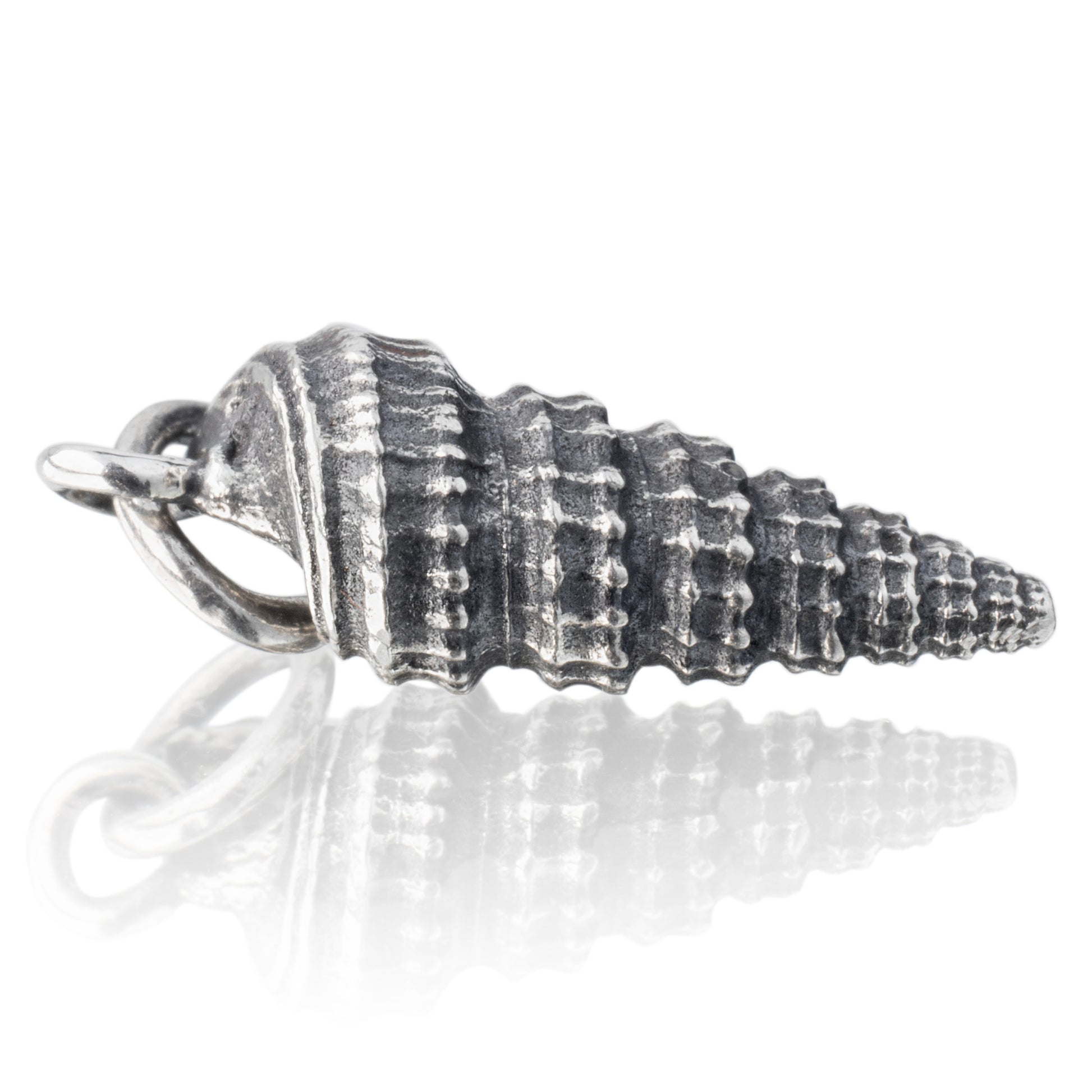 The detailed miniature cone shell is a true masterpiece of nature in sterling silver.