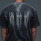 Oversized T-shirt with custom dyeing “Devil May Cry Too”, which has gone through several stages of processing.