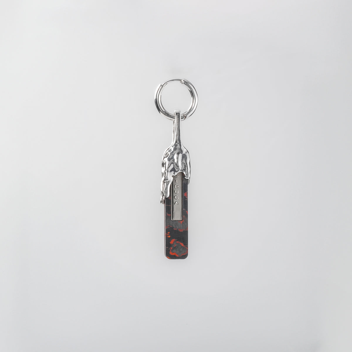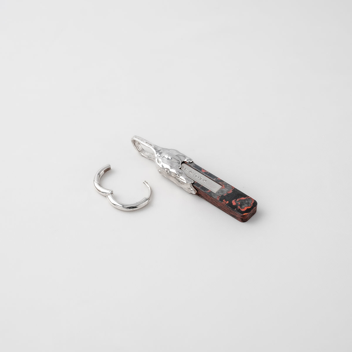 Silver objects. Structure: Silver classic earring + Mini line carbon fiber Bloody Graphite charm with silver frame