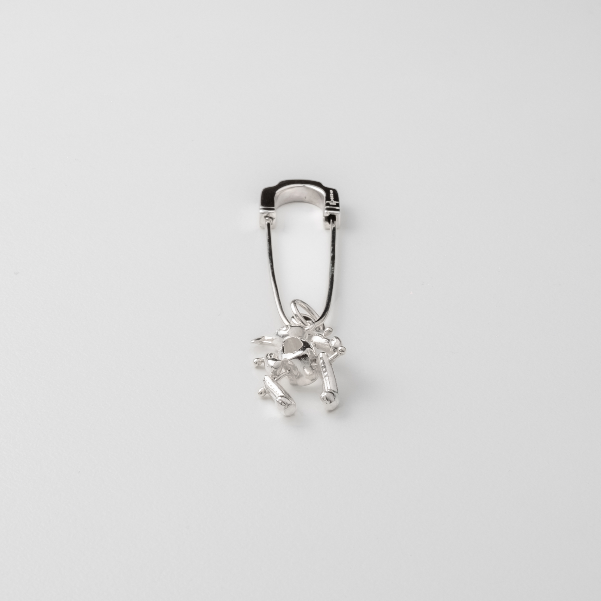 From Bali hand crafted sterling silver (925). Objects (use like brooch or earring). Structure: Silver blade pin with BearRabit charm