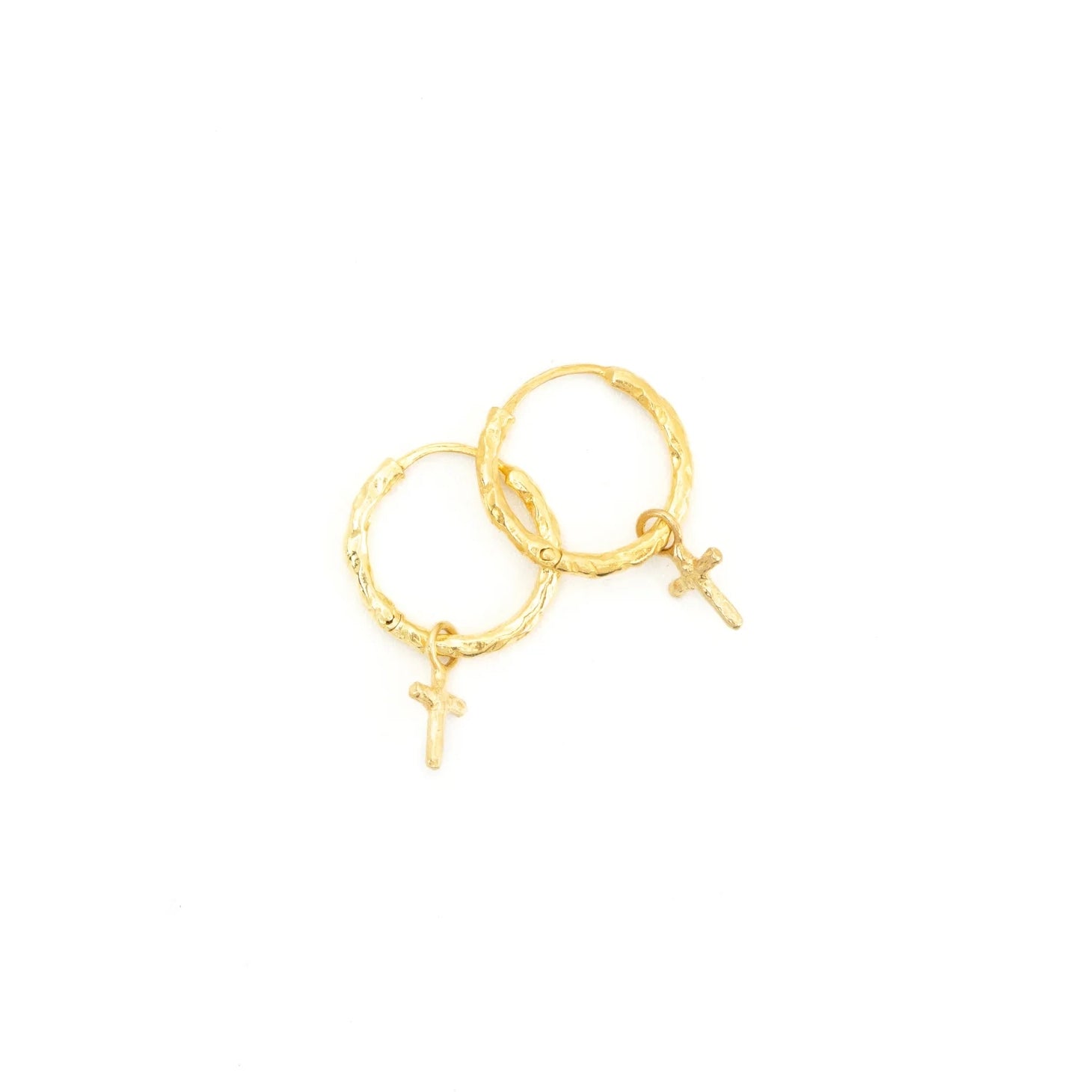 A timeless blend of faith and elegance, the Eclisse di Croce Earrings feature a sleek hoop with a delicate cross pendant. Available in gold vermeil or sterling silver, they offer a refined yet meaningful touch to any look.