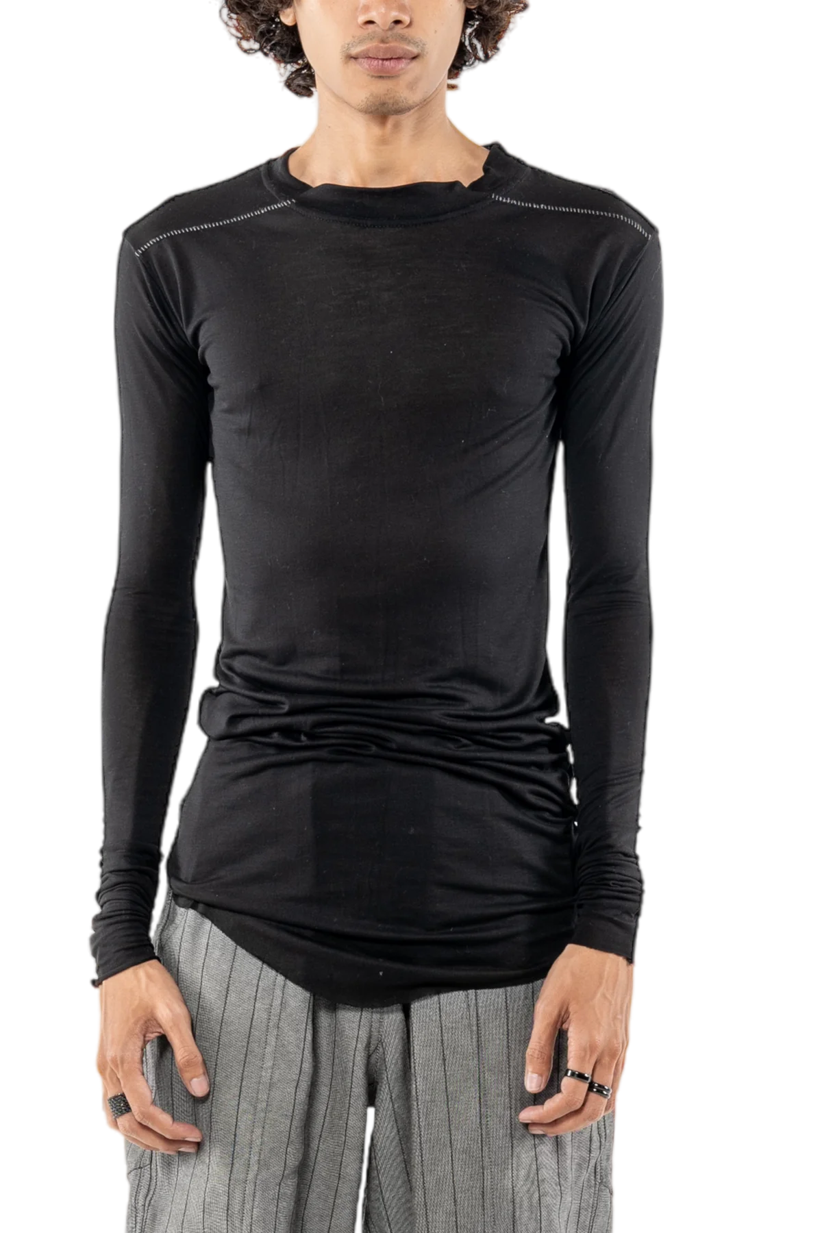 Combining avant-garde flair with gender-fluid, non-binary sensibilities, this fitted long-sleeve redefines comfort. Crafted from 100% Ecovero, its stretchable soft viscose offers exceptional wearability.