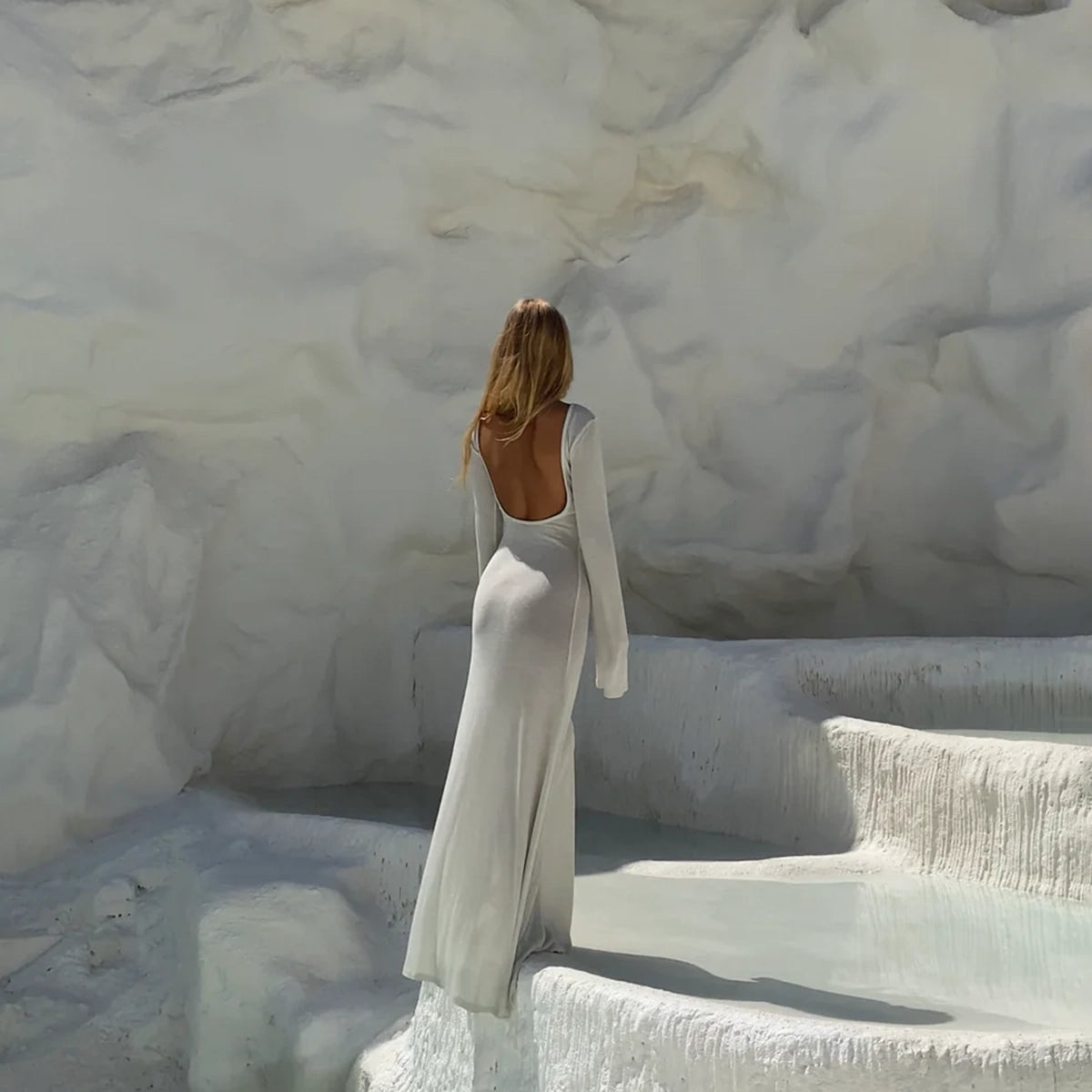 This one-size wonder embodies timeless elegance and unwavering femininity, making it a versatile addition to your wardrobe. Designed to flatter all sizes from XS to M, this dress boasts a flexible, stretchy material that gracefully embraces your curves. The open-back design adds a touch of allure, while the dreamy allure and feminine elegance remain constants. Whether you're strolling along the beach over your favorite bikini or wearing it solo, the Hanna Dress brings a touch of romance and dreaminess to any occasion. Its ethereal design and flowing silhouette capture the essence of sophistication, ensuring you'll feel like a true vision wherever you go.
