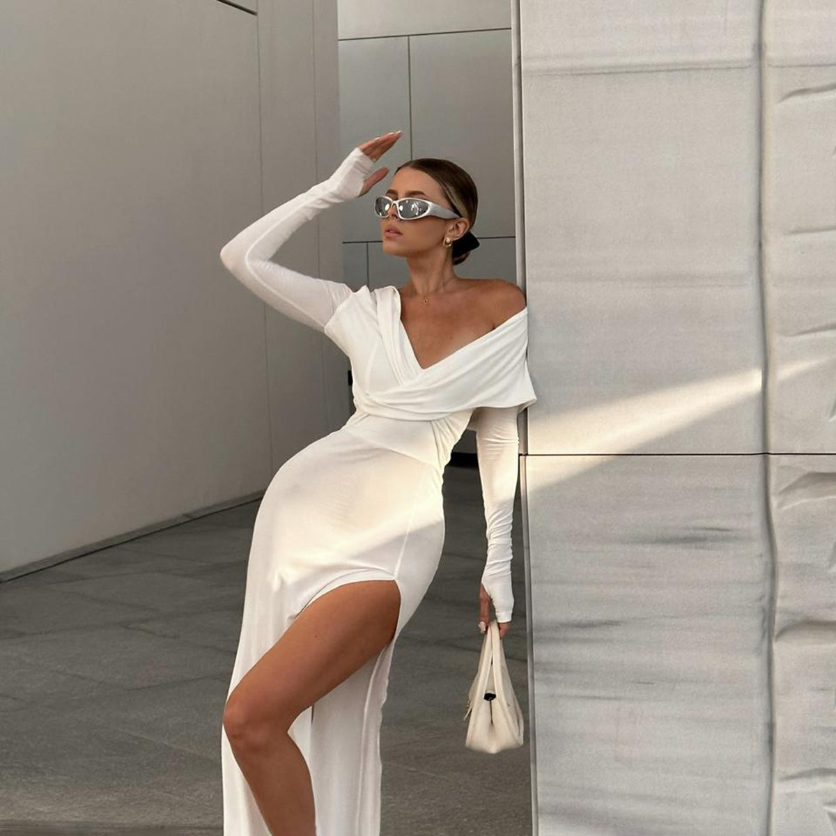 Hoodie Dress In White