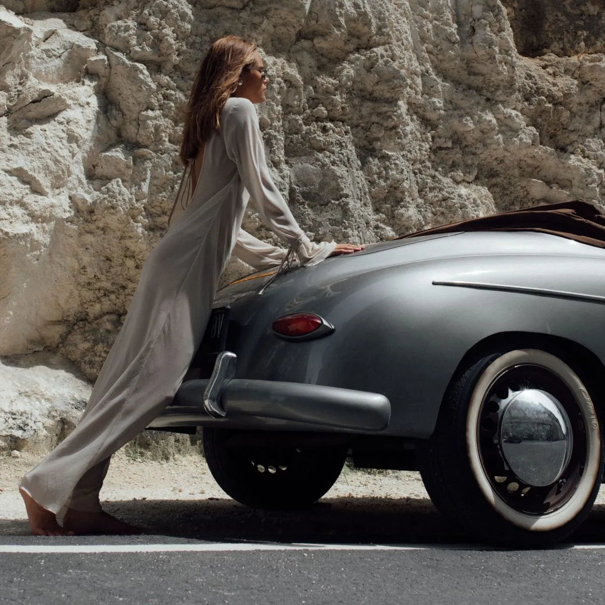 The long Karma dress was created with women who appreciate timeless classics in mind. This dress is made from natural chiffon, which subtly reveals and adds a unique character to it. The delicate and lightweight fabric ensures that every woman who wears it will feel luxurious and comfortable.
