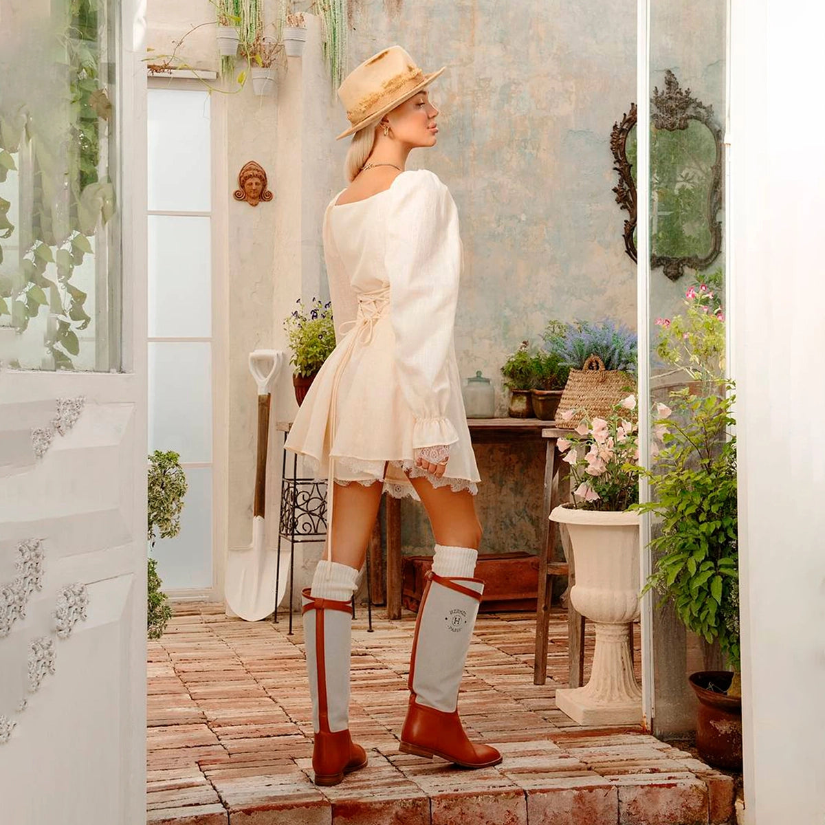 A light and romantic dress with elegant lace details is the perfect choice for the summer season. The soft fabric provides comfort in warm weather, while the accentuated neckline and long, voluminous sleeves with delicate cuffs add sophistication to the look. The relaxed fit highlights femininity, and the lace trim on the hem adds a touch of elegance. The standout feature is the adjustable corset lacing on the back, ensuring a perfect fit and a romantic vibe. This dress is ideal for casual strolls and evening gatherings.