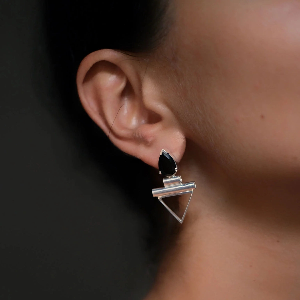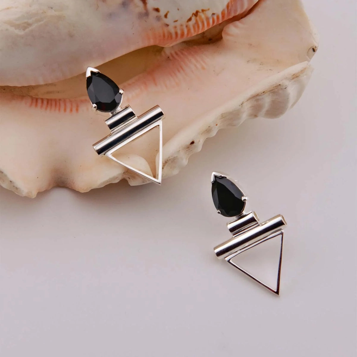 Elegant 925 Sterling Silver Earrings with Black Spinel. Completely Handmade in Bali.