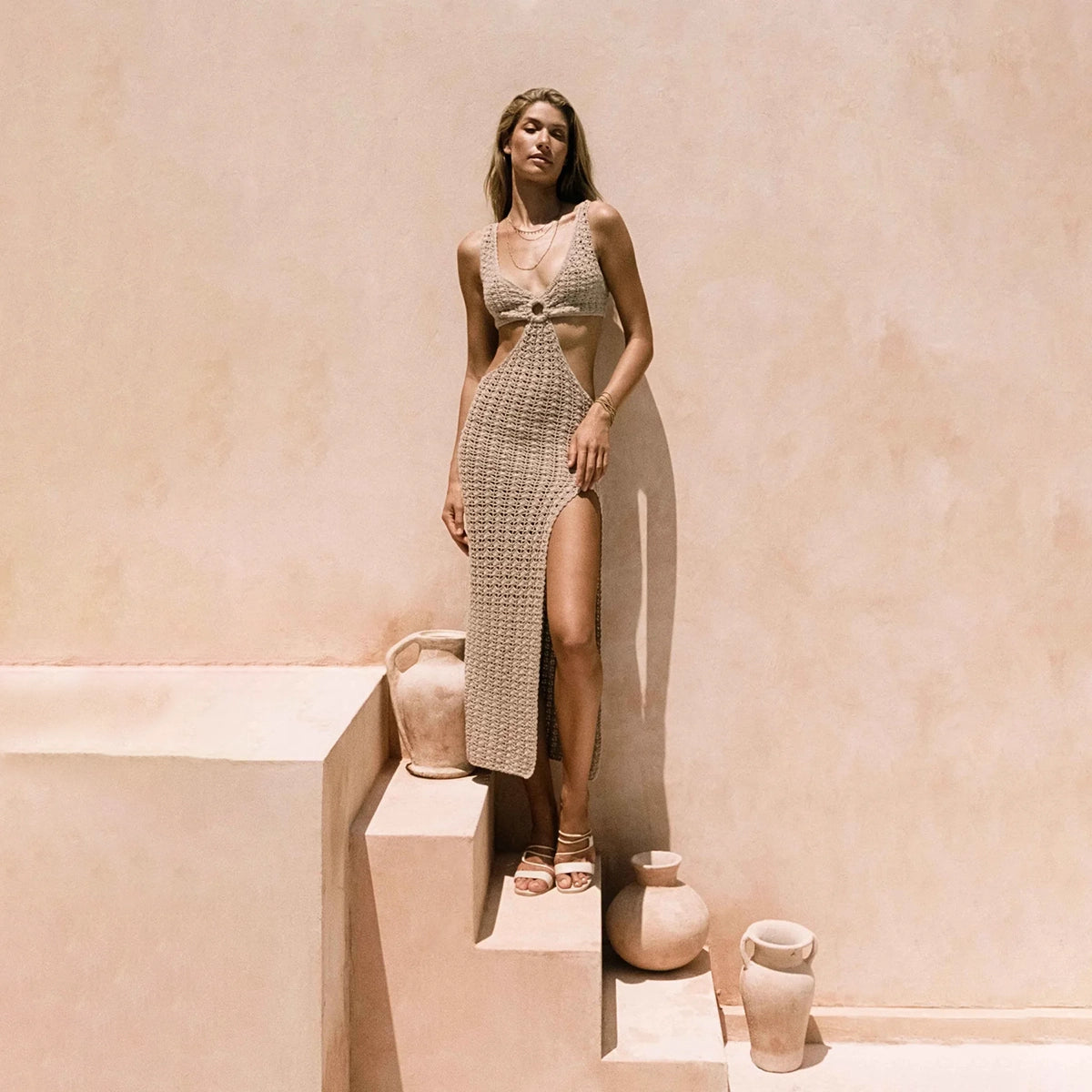 This boho-inspired dress is the perfect pairing for your next big adventure. Wear this midi dress with your favourite chunky wedge heel or with a simple necklace or earrings to elevate the look. The peek-a-boo cutouts make a statement of their own, too.