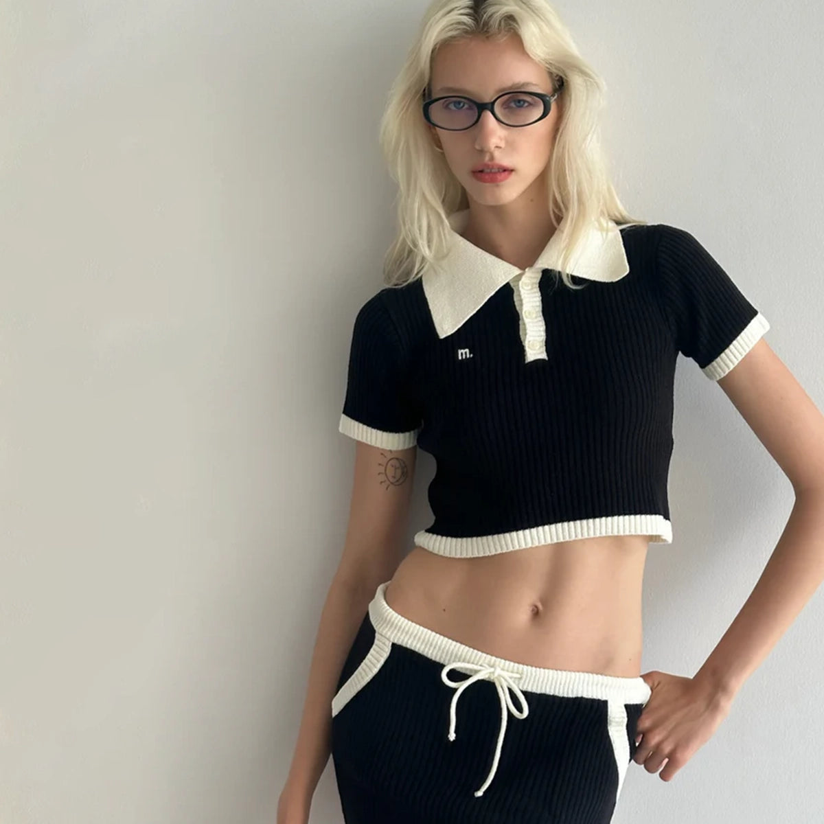 Sporty edge meets effortless chic. This cropped polo redefines retro cool with its sharp contrast details, textured ribbed knit, and sleek fit.