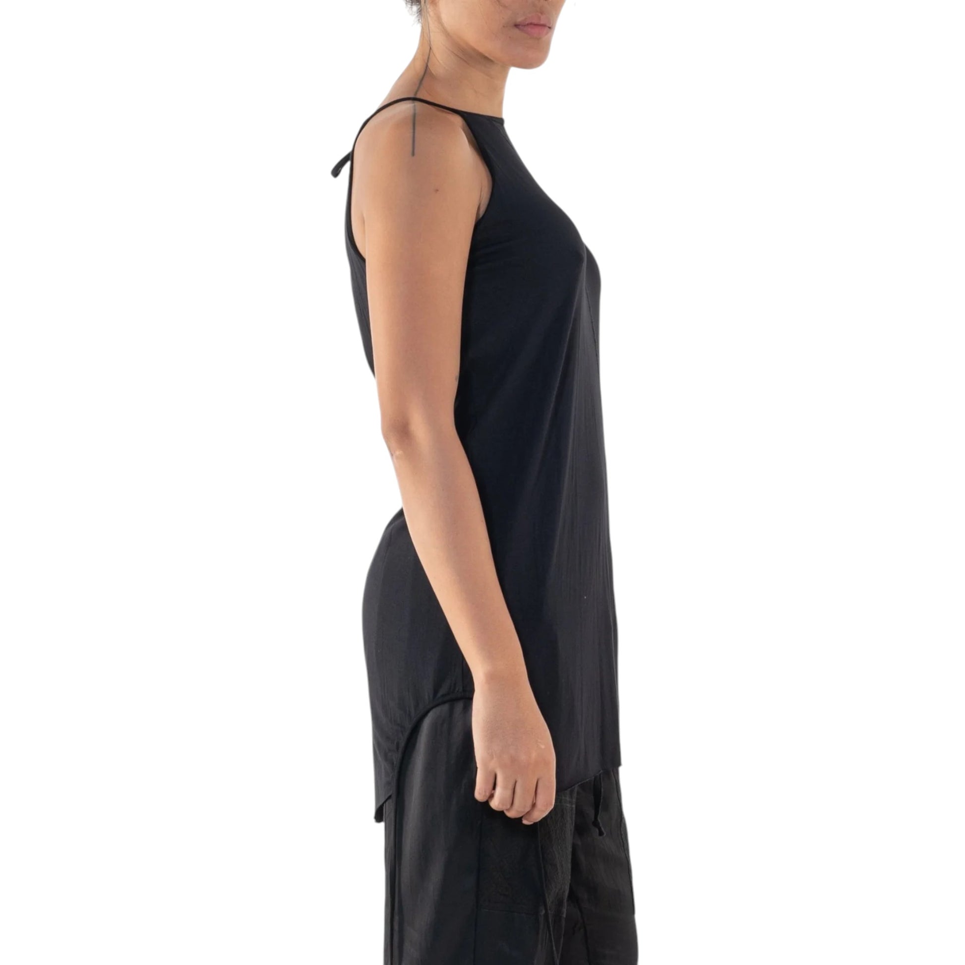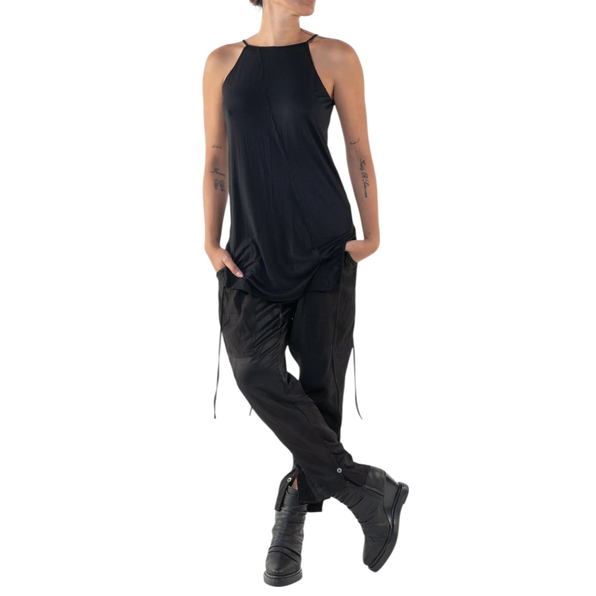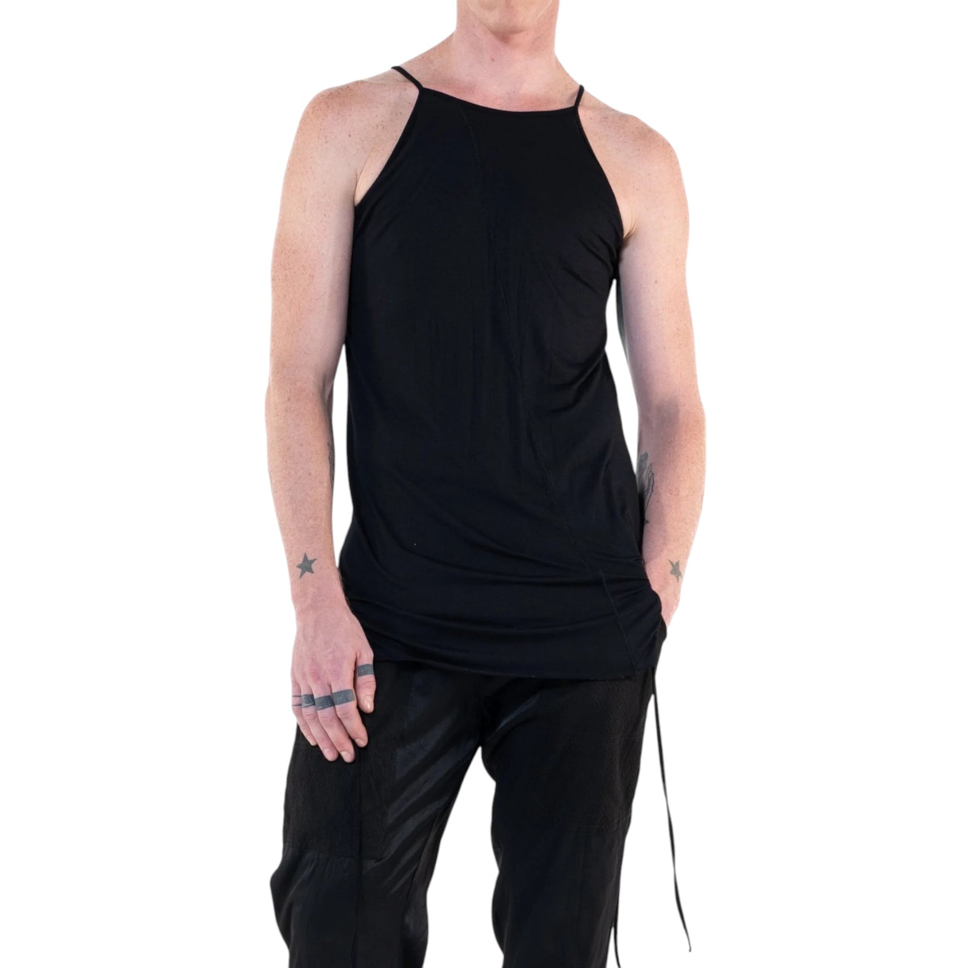 The Oracle Tank Top stands out with its innovative asymmetrical hems adorned with decorative bias strings, adding dynamic flair to its silhouette. Each detail is thoughtfully designed to elevate your style, whether you're hitting the streets or stepping into the spotlight.