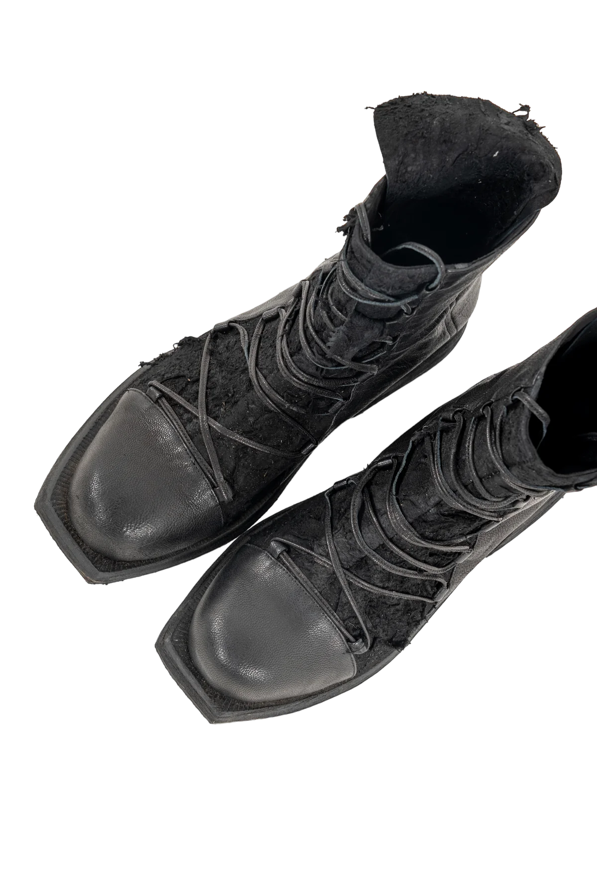 Featuring decorative front lacing and a convenient side zipper for easy wear, they exude timeless charm with their rough square soles. Handcrafted to order, we'll reach out to you personally to gather your precise measurements, ensuring a tailor-made fit. Please allow 10 to 14 working days from the moment we receive your measurements to experience the unmatched comfort and style of these artisanal boots that seamlessly blend individuality, fashion, and eco-consciousness.