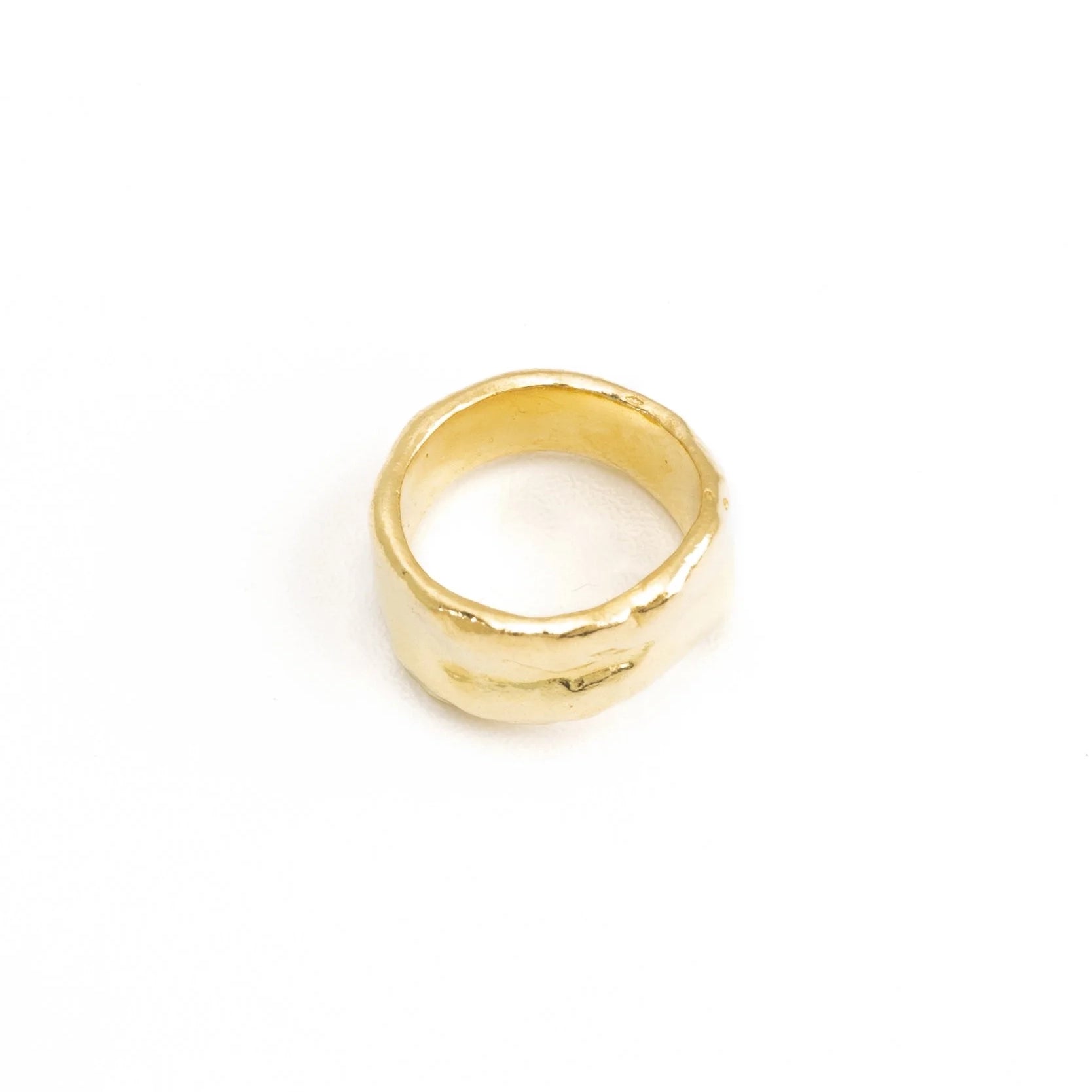 Rooted in raw sophistication, the Pietra ring in gold vermeil showcases a textured, alliance-inspired design. Its subtly polished surface enhances the rugged finish, creating a perfect harmony of organic beauty and refined craftsmanship. A statement of understated luxury, this ring is designed for those who appreciate effortless elegance with a bold character.