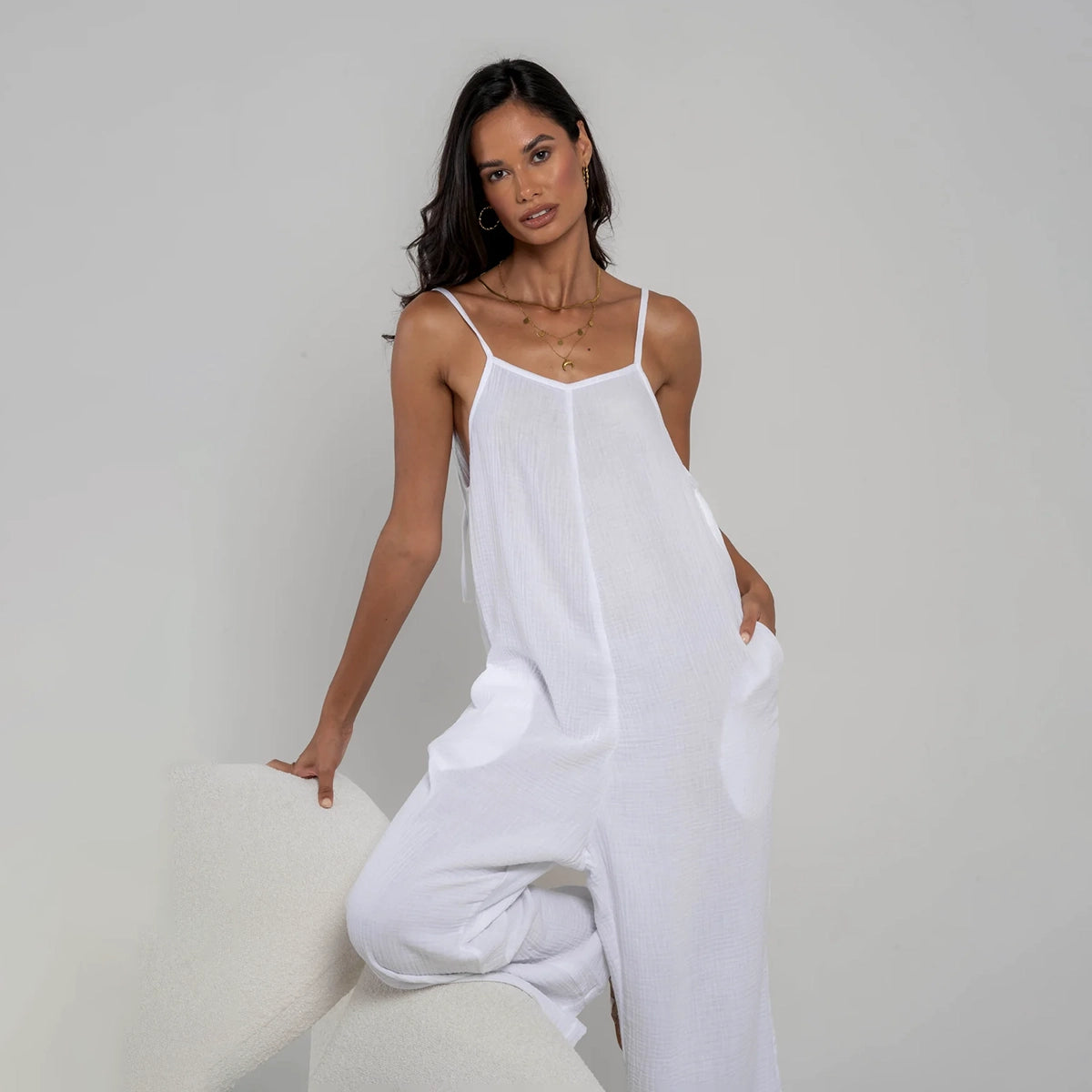 Nothing but relaxing summer vibes with this relax one piece. With its soft bubble cotton fabric and plunging back, comfort is everything!
