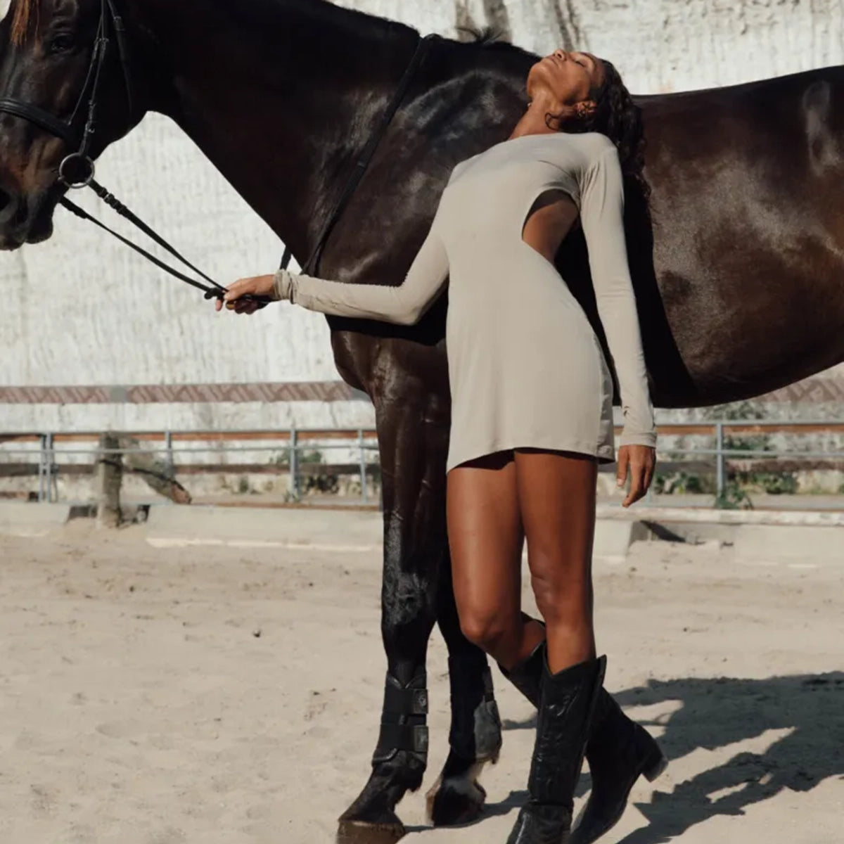 The Sand dress is a handcrafted piece made by talented local tailors in Bali. This short dress, crafted from stretch cotton in a sand color, enchants with its simplicity and elegance. The sensual open back and long sleeves create a harmonious look, accentuating the feminine silhouette while ensuring comfort. It’s the perfect dress for any occasion – pair it with cowboy boots for a night out or sandals for a summer day.