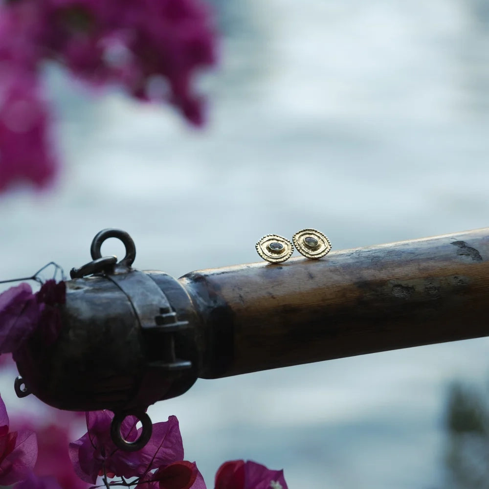 Bask in the radiant glow of the Sole Blu earrings, crafted in luxurious gold vermeil and adorned with brilliant blue topaz stones. Inspired by the golden sun reflecting over the Mediterranean Sea, these earrings capture the depth and mystery of the ocean with a touch of timeless elegance. A perfect statement piece to elevate any look with effortless sophistication.