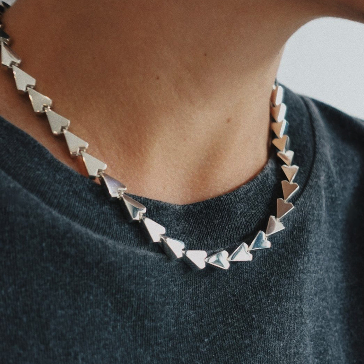 The design of our Square Heart necklace will leave no one indifferent. This trendy piece of jewelry, made of pure silver weighing 45 grams, embodies a perfect blend of delicacy and style. The unique heart shape, specially crafted by our designers, draws attention with its uniqueness and refined elegance.