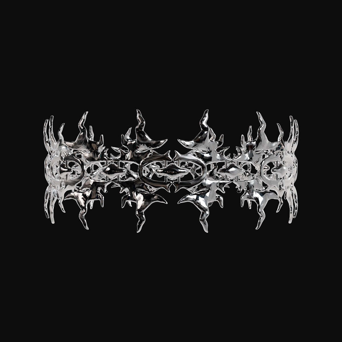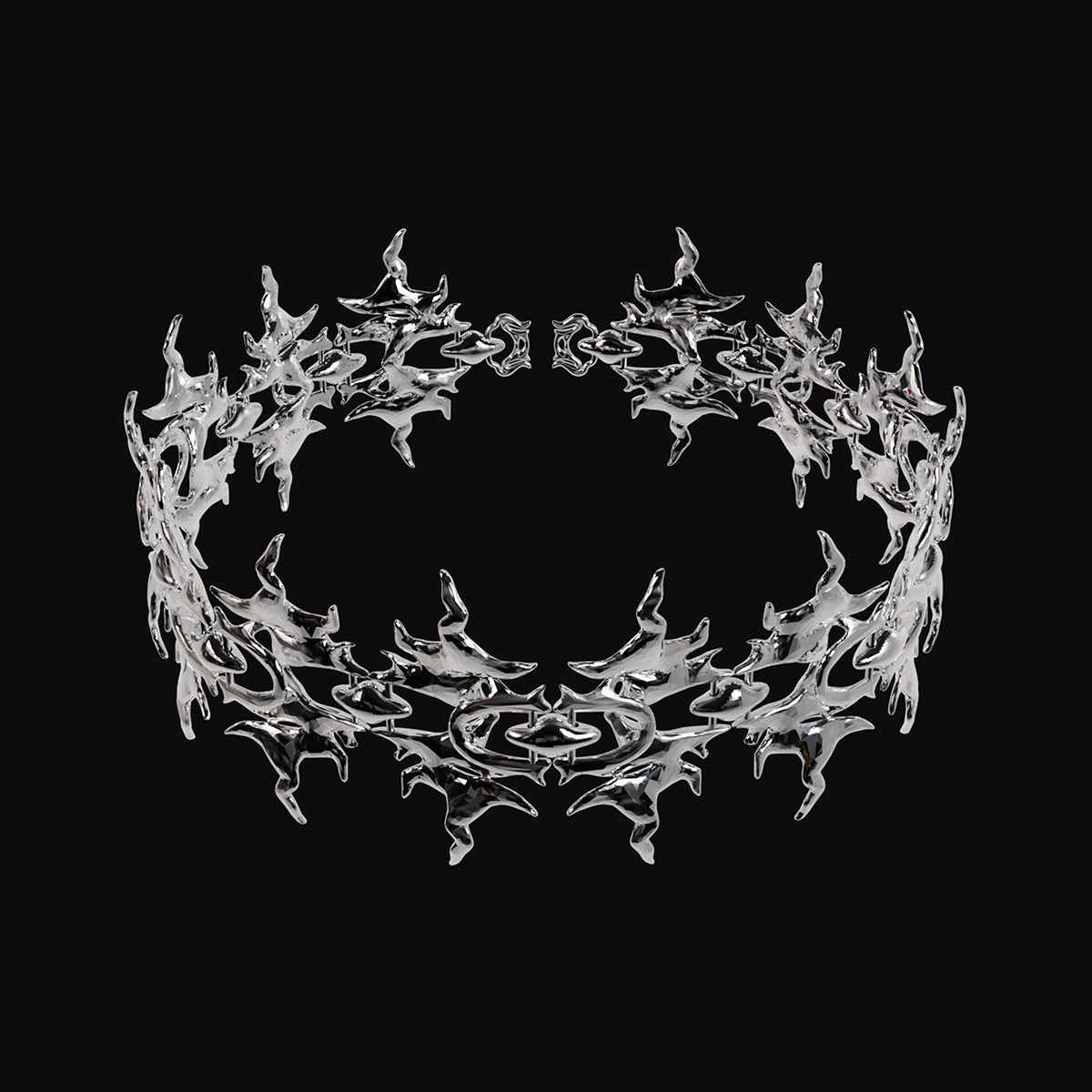 “Tribal spine” - iconic statement chocker with multi-layered and interwoven form. Inspired by organic and anatomical forms — echoing the structure of a spine of skeleton. Stylised through tribal and techno aesthetics.