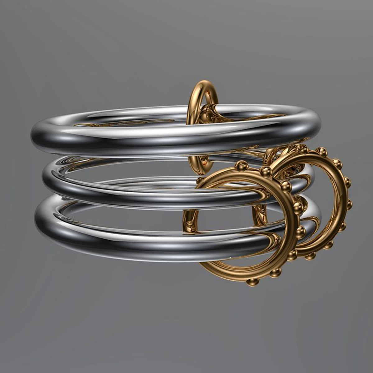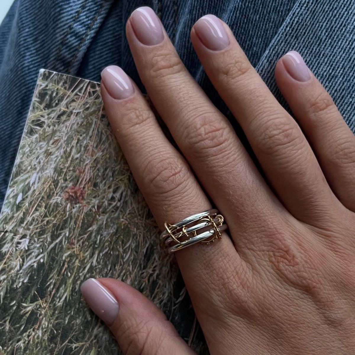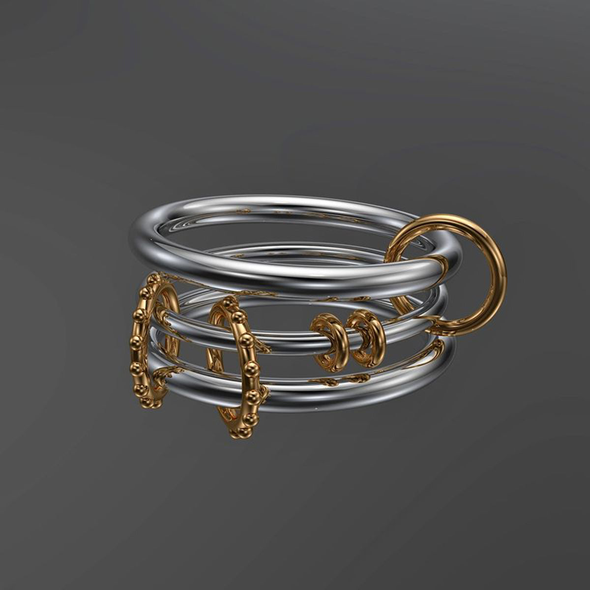 Discover the bold elegance of the Triple Ring #1, a unique statement piece designed for the modern individual. Crafted from high-quality silver with gold-plated details, this ring features three intertwined bands that create a striking and sophisticated look. Each band is meticulously polished, offering a seamless blend of style and versatility. Wear it as a single, eye-catching piece or separate the bands to mix and match with other rings in your collection. The Triple Ring #1 is perfect for those who love to stand out and express their unique style with confidence.