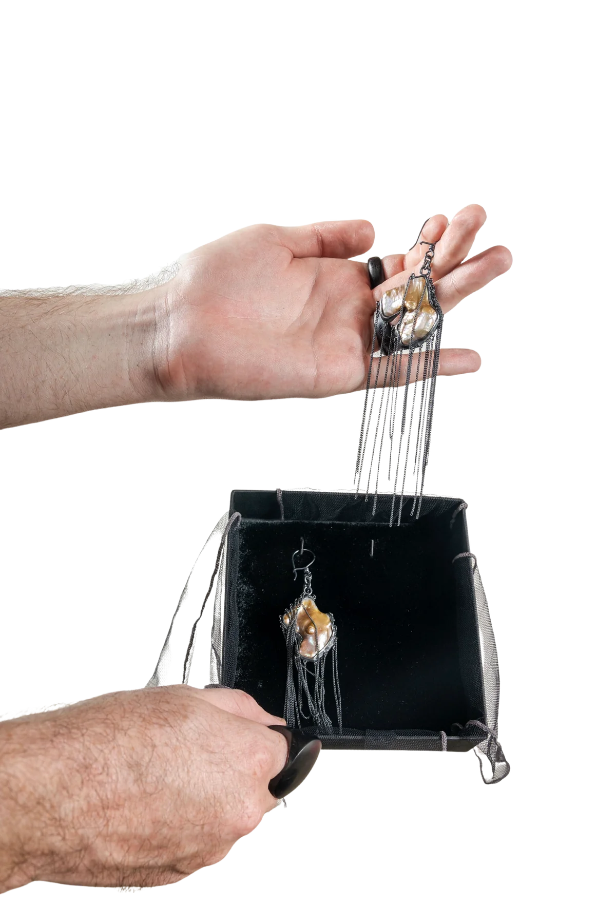 The Wells earrings are a modern interpretation of the most popular piece of jewelry back in Victorian times. Other than using "perfectly" rounded pearls we wanted to show nature's perfect imperfections that also reflect more on who we are as people.